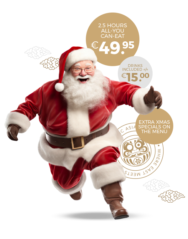 AT MIYAGI AND JONES ARNHEM, YOU CAN ENJOY THE MOST DELICIOUS DISHES THIS CHRISTMAS. THIS YEAR, WE’RE OFFERING A VARIETY OF DELICIOUS CHRISTMAS SPECIALS AND DESSERTS. AND UPON ARRIVAL, YOU’LL ALSO RECEIVE A DELICIOUS WELCOME APERITIF. FOR GUESTS AGED 12 AND OLDER, YOU CAN ENJOY 2.5 HOURS OF UNLIMITED DINING (EXCLUDING DRINKS) FOR €49.95. CHILDREN AGED 4 TO 11 PAY €3.25 PER YEAR, AND THE VERY YOUNGEST CHILDREN UP TO 3 ARE FREE. FOR AN ADDITIONAL CHARGE OF ONLY €15.00 PER PERSON. YOU CAN ENJOY DINNER WITH DRINKS INCLUDED! (KIDS TILL THE AGE OF 11 €10,-)